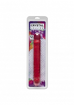 Doc Johnson's 12" Crystal Jellies JR. Double Dong is a soft and flexible variation of the original dong that started it all. This double-ended cock has the traditional thickness and veiny texture we all know and love, plus a flexible shaft and glistening color options! Available in Pink, Clear and Purple. All of our Crystal Jellies are from non-phthalate body-safe material, which includes Doc's antibacterial Sil-A-Gel formula and are proudly made in America.
