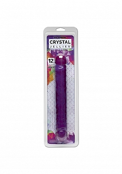 Doc Johnson's 12" Crystal Jellies JR. Double Dong is a soft and flexible variation of the original dong that started it all. This double-ended cock has the traditional thickness and veiny texture we all know and love, plus a flexible shaft and glistening color options! Available in Pink, Clear and Purple. All of our Crystal Jellies are from non-phthalate body-safe material, which includes Doc's antibacterial Sil-A-Gel formula and are proudly made in America.
