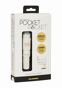 The Original Pocket Rocket is simply the most powerful and reliable massager in the world! Designed to stimulate the clitoris and other sensual spots, this toy is made for external use, not for insertion. Three metal balls deliver powerful vibrating experience while the bottom dial controls the function and the speed of the massager. Get ready for blast off! Non-phthalate, body-safe ABS plastic. Ivory.