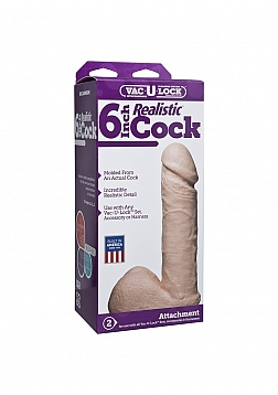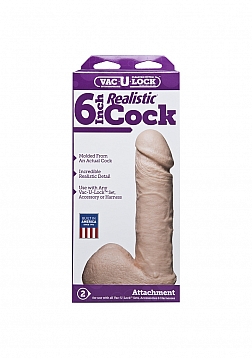 Take in all 6 inches of this Realistic Cock Vac-U-Lock attachment. The bulging veins, plush balls, and hand painted detail will have you falling in love! Works with all Vac-U-Lock systems. Proudly Made in America. phthalate-free, body-safe. Available in White, Black, and Brown.