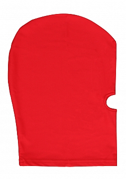 This comfortable Submission mask is designed to stretch completely over the head. The fabric allows just a hint of light in while impairing vision and awakening other senses. The shiny hood can be worn by him or her, and the thin lightweight fabric makes breathing and hearing a snap. Best of all, you still have access to your subject's mouth!