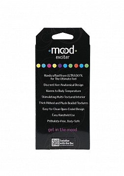 Double your pleasure with the Mood Exciter. This ergonomically designed ULTRASKYN stroker features two entrances; the smaller, tighter tunnel features plush massage beads while the larger tunnel is heavily ribbed for your pleasure. This unique design makes it easy to flip it, grip it, and alter the sensation mid-session! Find the fit that’s right for you! The Exciter is available in Blue, Orange, Purple, and Frost. Proudly Made in America.