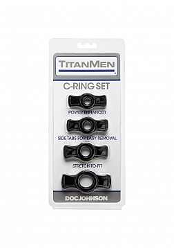Enhance your member with the most convenient and manageable cock rings available. These TitanMen Tools Cock Rings stretch to fit with the aid of easy to grip side tabs. Each set contains 4 rings ranging in size from 0.4" to 0.75" un-stretched. The largest flexible ring can accommodate up to a 3" diameter shaft. The rings are easy to place and remove, even with slippery hands, because each tab features a thick border, allowing the rings to be adjusted with ease. The TitanMen Tools Cock ring set is made of non-phthalate TPR and is available in Black, Blue and Clear.