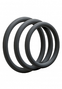 Optimize your experience with these silicone cock rings! The OptiMALE Thin C-Ring Set offers enhanced size and girth with three rings in 40mm, 45mm, and 50mm diameters. These rings are ultra-stretchable for easy use around the shaft or testicles, maintaining those long-lasting erections you've always dreamed of, and prolonging your ejaculation. Available in Black and Slate; phthalate-free silicone.