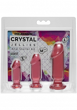 Work your way up to backdoor bliss, with the Crystal Jellies Anal Starter Kit! Perfect for beginners, each plug features a flat comfortable base for easy wearability, while the pronounced head and smooth shaft is sure to make for some jellie jammin' satisfaction! The small plug is 1" in width with a 3" usable length, medium is 1.5" in width with a 4" usable length, while large offers a 2" width with a 5" usable length. These jellies can be worn alone or used with any o-ring compatible harness. Available in Pink, Clear, and Purple.