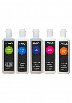 Five formulas sure to get your manhood in the MOOD! Each in a sleek 1 oz. bottle, the Pleasure For Him multi-pack includes a Slow It Down Cream for marathon sessions, a Slick & Smooth Water-based Body Glide, a cream to lube so you can Stroke it Right, a flavorful Berry Mint BJ Gel for delicious playtime, and a Plump it Up Cream for size enhancement. Sugar-free and Proudly Made in America.