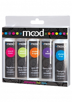 Five formulas sure to get your manhood in the MOOD! Each in a sleek 1 oz. bottle, the Pleasure For Him multi-pack includes a Slow It Down Cream for marathon sessions, a Slick & Smooth Water-based Body Glide, a cream to lube so you can Stroke it Right, a flavorful Berry Mint BJ Gel for delicious playtime, and a Plump it Up Cream for size enhancement. Sugar-free and Proudly Made in America.