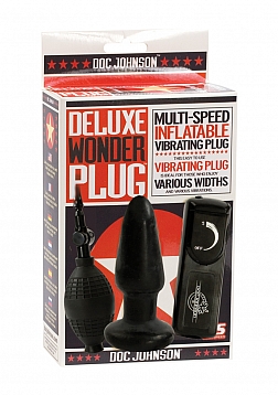 Pump it up! Designed with a classic tapered shape for easy entry, this inflatable vibrating plug grows in size with every squeeze of the bulb. The expandable casing in strong, flexible silicone is hypoallergenic and velvety soft for the most pleasurable use. A quick-release air valve immediately returns the plug to its original size when held down, and can also be used incrementally to change the size of the plug during play – experience a new sensation with every pump or release. The Deluxe Wonder Butt Plug's powerful multi-speed vibrations are operated via a simple push-button control for easy one-handed use.