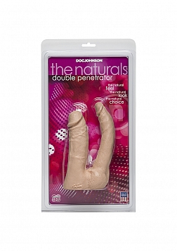 This Double Penetrator offers dual vaginal & anal play, made from rubber with a realistic feel! The vaginal dong measures 5 inches in length, and has a 5 inch girth. The anal dong measures 5 inches in length, and has a 3.5 inch circumference. This 'Naturals' dong has realistic style and thick veined for additional pleasure.