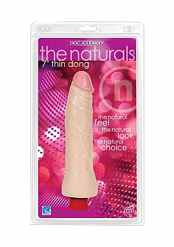 The Thin Natural looks and feels so much like a real penis, you might actually do a double take...and this one vibrates! The body-safe PVC with antibacterial Sil-A-Gel formula makes for a super-flexible cock that moves with you. The raised veins and incredibly detailed head adds to the realism while the multiple speeds of vibration are controlled easily on the base with a twist-dial. This cock is pretty manageable in terms of size, with a 7 inch length, and a girth of 2.5 inches, making it great for someone who likes a realistic size as well as look. Available in White and Black.