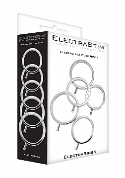 Find the perfect fit for most parts of your shaft with this bumper pack of 5 ElectraRings cock rings from ElectraStim. Each of the rings has a unipolar 2mm input that allows it to be connected to an ElectraStim stimulator (sold separately).