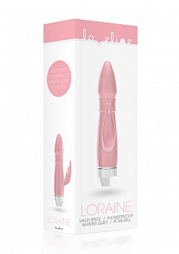The Loveline Loraine should be an absolute must-have on your bedside table! This very handy, light weight and easy-to-use vibrator is fully adjustable by means of a conveniently placed rotary button. The vibrations are very powerful but whisper quiet at the same time. It is showerproof for some real fun in the bathroom and because of the multi-speed possibilities you will never get enough of it! The rabbit extension will tickle and stimulate the clitoris while the shaft will help you to reach places you have never known that existed! The compact size of this toy makes it a perfect travel companion as it will fit in any purse. This vibrator only needs two AAA batteries to give you ultimate pleasure, wheneverÂ…Â…wherever!!