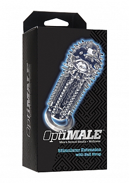 The OptiMALE™ Stimulator extension is easy to put on, comfortable to wear, and intensifies enjoyment for both yourself and your partner. The soft and stretchy material hugs your shaft tight while the firm head at the opposite end adds a full inch to your length, and stimulating exterior nubs send your partner to new heights of pleasure. An attached ball strap at the base works like a c-ring to make your erection more powerful and long-lasting, completing your OptiMALE™ experience.