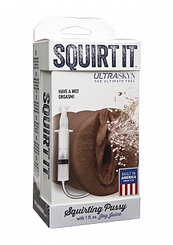 Your wettest and wildest fantasies are now in the palm of your hand with this ultra-lifelike squirting pussy stroker! Made of our incredibly lifelike ULTRASKYN™ material, the Squirt It masturbator squirts on command thanks to an easy-to-fill syringe and a 1 fl. oz. bottle of realistic Joy Juice. Squirt It also features a tight pleasure tunnel with plush internal ribbing, for even more pleasure. When you're ready, just squeeze the attached squirt syringe to flood the Squirt It and yourself with sweet pussy juice. Open-ended design makes cleanup a breeze. Each Squirt It includes a 1 fl. oz. bottle of Joy Juice, Doc Johnson's special formulation made specifically for use with our squirting pussy masturbators.