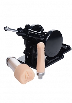 This versatile fucking machine comes equipped with an adjustable speed remote, so you get to choose your ideal thrusting level at the turn of a dial. The angle and height of penetration can quickly be adjusted with easy twist knobs located on the frame. Comes with two screw-on attachments: a flexible, bendable dildo, and a plush pink pussy. To experience realistic, multi speed thrusting action that is sure to satisfy, simple screw on the attachment of your choice, turn up the speed, and enjoy amazing penetration or hands-free fucking action! Robo FUK is lightweight and pre-assembled, with a plastic shell and aluminum arm, cutting down on extra weight and making it ideal for travel. There is no complicated set up or confusing parts to set up. It is practically ready to go straight out of the box! While it may not be as hardcore as some of our other machines, its compact, lightweight, and versatile design makes it ideal for couples, small spaces, travel, and on the go pleasure! It operates quietly and is ideal for those seeking discretion. The thrusting arm has a curved handle, a perfect grip for a partner to use to angle it into you, or for solo use to brace yourself against. It also comes with 4 suction cup feet which will help anchor it in place on a hard, smooth surface. Ideal for vaginal or masturbatory use. For more hardcore anal penetration, see our other love machines