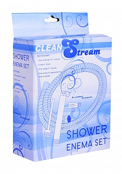 This enema kit now includes a free narrow nozzle.New, longer 6 foot hose makes your enema time much more convenient.You use the shower knob to regulate the force of water through the hose into their ass. This allows for a more gradual and comfortable enema experience.This is a very neat enema system. Its douche/enema nozzle is outfitted for use as a shower attachment. The Shower Enema Kit comes with two nozzles, one is 5" and the other is 3.5". It also comes with a 6ft (2m) metal hose. One end of the hose screws into your shower, the other end is where you attach your choice of nozzle. Where the Shower Enema Kit connects with your shower it has a valve that directs the water either through the nozzle and into you or to the shower head