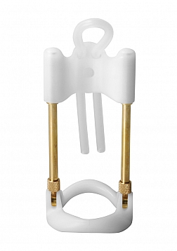 The Penile Aide increases both penis length and girth by using traction, from its spring loaded steel rods, to assist the bodys natural ability to change and develop under physical influence. If you subject the penis to constant stretching the cells will begin to divide and multiply, thus increasing tissue mass. This is a similar technique that African tribes have been using for years to stretch their ears and lips. Note: The standard rods give a top length of 5 inches. If you wish for more stretching, add the extension rods which can stretch the top length to 7.5 inches.