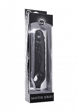 This lifelike penis extender aims to satisfy both you and your partner by providing increased size as well as a prolonged erection, great for lengthy sessions. Simply insert the penis into the comfortable, hollow shaft, and then pull the testicles through the base ring. The inside of the hollow shaft has exciting sensation nodes, for stimulation for the wearer. Entice them with a larger, longer-lasing erection, for unending pleasure and over the edge climaxes.