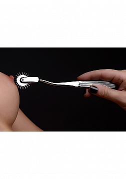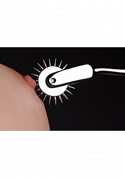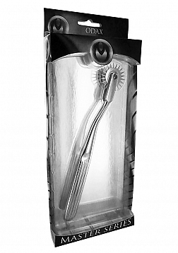Test the limits of sensitivity play with the Odax Sensation Wheel from the Master Series. Run this premium spiked wheel across the skin and other highly treasured areas for an exciting prickle of pleasure. Made of stainless steel and deviously designed with a row of evenly spaced sharp pins that turn smoothly as it rolls across the flesh, the Odax is ideally designed for intense, exquisite pleasure. Take it to the next level with a little temperature play...the slick material of the Odax can be warmed or cooled for an extra spike of sensation.