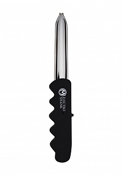 This prod-style electro shock device is a devious way to keep your sub in line! The Electro Shank is designed for electro play enthusiasts and curious sadists and masochists alike. Take hold of the comfortable handle while your play thing prepares for a zap! This device delivers an intense shock that is sure to correct your lovers naughty behavior. The sleek, sensual blade is perfect for teasing your sub before delivering the shock! An easy-to-use button allows you to control the length and frequency of the shocks, while the handle and blade are safe to the touch.
