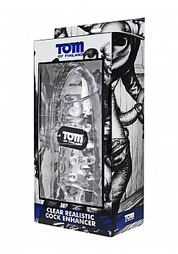 This smooth, clear cock enhancer has a retaining strap and is studded internally with gripping nodes. The phallic shape instantly adds girth and length, with thick walls and a solid tip. The material is stretchy yet firm, and is phthalate-free