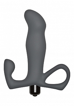 Optimize every opportunity. Precision-crafted in flexible silicone, the OptiMALE Vibrating P-Massager is specially designed to provide optimal p-spot stimulation, a practice that promotes heightened sexual pleasure and proven health benefits. This smooth contoured massager is perfectly angled to make direct contact with the prostate—popularly known as “the male g-spot”—while simultaneously teasing the perineum, another lesser-known male pleasure spot. The thoughtful design includes a sturdy loop-style handle for safe use and simple removal. The 10-function multi-speed bullet is fully removable for easy cleaning of the dishwasher-safe health grade silicone massager.