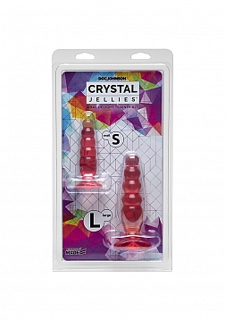 Explore your backdoor with confidence! With a and medium plug, the Crystal Jellies Anal Trainer Kit is the perfect fit for anal play beginners. The small plug features 4” of insertable length, and the large plug features 6” of insertable length. These plugs feature a wide flared base for safe and comfortable anal play. Crystal Jellies are made from phthalate-free body safe material. Proudly Made in America.