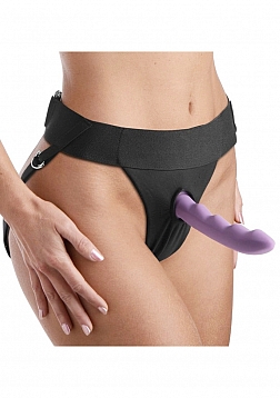 Couture and comfort collide with the uniquely designed Avalon Harness System from Strap U. Featuring one of a kind X style fabric panels, to help secure the dildo and keep it from chafing against the skin, making it ideal for extended wear. This exceptional design allows you to easily switch toys during play. Avalon is outfitted with highly adjustable slide-through buckle straps that will adjust to fit up to a 46 inch waist. This system beasts a thick, supportive elastic waistband, allowing for greater movement, comfort, and support. With a universal O-ring at the front, this harness can be used with practically any wide-base dildos. The rear straps leave the back open for fun possibilities.