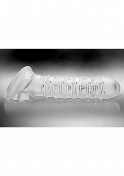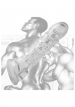 Add length and girth to your erection with a textured enhancement sleeve! Penetrate your partner with a bigger dick when you slide into the stretchy extender, nubbed and ribbed internally for your intense pleasure. As you thrust into your lover, you will feel the delightful friction inside, while the external ribbing massages their hole. The ball strap feature includes a stretchy opening for your scrotum to fit through, keeping this phthalate-free sleeve in place and adding extra sensation. Clean with mild soap and warm water. Safe for use with both water-based and silicone lubes. Free Tom of Finland collector card and dog tag included!