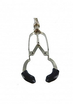 Designed for precision and strength, the Bauhaus Nipple Vice comes to you with two clamps that can be adjusted to your desired level of tightness with the adjusting screws located at the base. The tips are covered in soft TPR with the addition of a delicate curve at the very end that assists in gripping the skin of your subject. Ending this commanding piece is the addition of a 12 inch connecting chain that looks oh so enticing as it hangs from the captive nipples of your plaything.