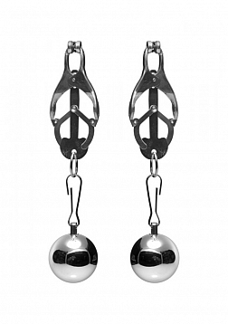 These ingenious clamps are specially designed to tighten their grip as they are pulled downward. The ends are tipped with ribbed rubber, to help retain their grip and add to the sensation. Each weight clips easily on to the end, supplying 8 oz of pull each, for a full pound of pressure total.
