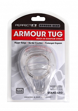 The revolutionary design of our Armour Tug combines the bulge, erection and orgasm benefits of our best-selling Cock Armour cock ring with a little something extra for your balls. Yes, we’ve added a ball strap that gently tugs them down for an exciting new sensation during sex.