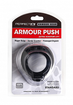 Put your best package forward with the revolutionary design of our Armour Push, the cock ring that has a little something extra. This slimmer version of our best-selling Cock Armour, has an extra ridge that gives your package an extra lift. As if that wasn’t enough, the anatomical shape hugs your torso and stimulates your perineum for a more intense orgasm.