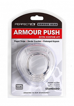 Put your best package forward with the revolutionary design of our Armour Push, the cock ring that has a little something extra. This slimmer version of our best-selling Cock Armour, has an extra ridge that gives your package an extra lift. As if that wasn’t enough, the anatomical shape hugs your torso and stimulates your perineum for a more intense orgasm.
