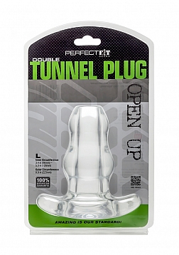 Four our more experienced players, The Double Tunnel Plug features two plugs that slightly taper to the tip which makes it one of the most innovative butt plugs available on the market. Just like our Tunnel Plug, it also features the tunnel hole that goes all the way through the plug – clearing the way for various play including lube insertion, fingers, watersports and toys. And, the clear version also makes it possible to see right into the other person.