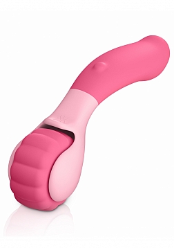sol-o features a powerful, rumbling vibrator inside its grooved, silicone wheel. The elongated silicone handle allows you to easily roll sol-o across the neck, back and body providing muscle relief to those hard-to-reach places. As the grooved surface stimulates the outer muscles the vibration awakens the nerves deeper in the body for powerful muscle relief. Work out your kinks! Jimmyjane evoke vibrating massage wheels are the first ever massagers to combine rolling massage wheels with deep, rumbling vibration. The smooth, silicone wheels easily roll across the contours of the body to relax and invigorate the muscles, while the powerful vibration stimulates the nerves to increase circulation and reduce stress. Unlike other massagers, the revolutionary wheel design makes it easy to move and roll the massager across the body hitting every pressure point. With minimal pressure, evoke turns even the novice to a master masseuse! The EZ Griptm; Handle makes it easy to relieve stress in those hard to reach areas. Use them alone or with a partner for the perfect DIY massage treatment at home. Choose your sensation! EZ Griptm; Handle: Ergonomically Designed Silicone Handle Easy to Use: Simple Two-Button Operation Rechargeable: International USB Rechargeable, High Quality Lithium Ion Battery Powerful Vibrations: A Powerful Japanese Motor in the Wheel, Provides Deep Rumbling Vibrations to the Deepest Muscles Grooved Surface: Stimulates Outer Muscles to Work out the Kinks.