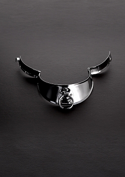 This stainless steel premium-quality slave collar can be worn as a symbol of submission, or it can serve as a gorgeous accessory piece to wear with club gear, fetish outfits, costumes, etc. Sexy and versatile, this chrome collar is designed especially for men. It is lightweight with smooth, curved edges, and lined with suede for comfort. The high-gloss finish is mirror smooth and resistant to scratching. The hinged sides and locking back clasp allow for a snug fit and locked security. An O-ring adorns the front and is a perfect attachment point for a leash, rope, name tag, etc.