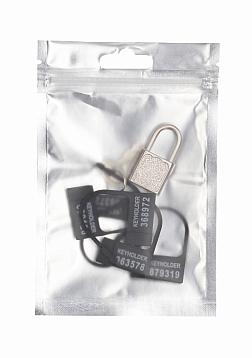 This set contains 5 black spare locks, and a sturdy metal pad lock with keys.