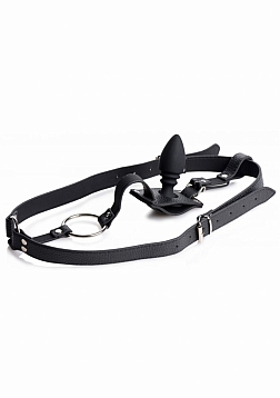 Keep your partner stuffed and ready for action! This harness combines a hard, unrelenting metal cock ring with a rippled silicone butt plug. Pull the penis and scrotum through the ring to create a rock-hard and ultra-sensitive erection. Push the tapered tip of the plug in and enjoy your partners pleasure as the ridges pass in afterwards. Tighten the straps so that they feel trapped and enjoy their desperation! The plug can also be removed to play with on its own, with a convenient suction cup base. Not compatible with silicone lubricant. Clean with mild soap and warm water.
