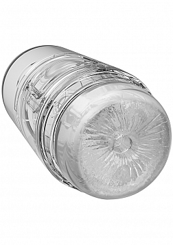 See yourself in a whole new way. This unique double-ended addition to the Optix category of Main Squeeze variable-pressure strokers features lifelike ass and pussy openings in the collection's unique transparent design, scaled down to fit in the palm of your hand. Pop-Off's hard plastic case and tight, textured ULTRASKYN™ insert offer the same visually stimulating experience and squeezable, tightness-controlling grip as the original in a discreet compact size.