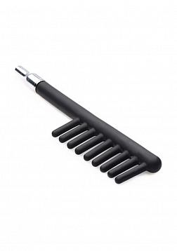 Forget about fragile glass and opt for an electrosex accessory that holds up against rough play and travel. If you have ever only used glass before in your Twilight wand, prepare to experience the sensual intensity of silicone! This soft and flexible comb plugs into your violet wand, spreading intense electro stimulation to whatever body part you choose via each of the 9 teeth. This extreme accessory offers estim intensity without the worry that handling delicate glass can bring, making it perfect for travel or rough play. The premium silicone is an intense conductor, and cleans easily after use. Compatible with the Zeus Twilight Violet Wand.