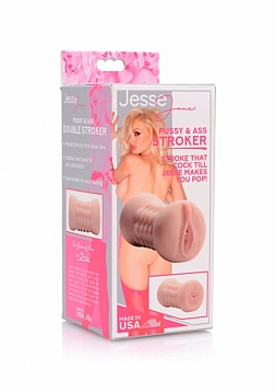 You never have to choose between her pussy or ass, because you can have them both! Jesse Jane is here to reclaim her throne. The bubby and busty blonde is back and ready for your cock! This All-American bombshell is one of the biggest porn stars of all time, known for her award-winning sex scenes and mainstream appearances. This lifelike stroker was molded directly from her pussy and asshole so that you can have sex with her whenever you want. The realistic material is stretchy to fit all sizes and feels just like the real thing! Her nubbed love tunnels will provide extra stimulation as you thrust in and out and the textured exterior allows you to maintain a firm grip. An open-ended design makes it easy to clean after use. Care instructions included.
