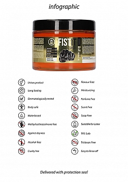 Fist It is a water-based lubricant. Suitable for use with latex condoms. Dermatologically tested, fat-free, colourless, odourless and tasteless. Directions for use: Apply as much gel as you want on the body part of your choice, and repeat as often as you like. Keep out of reach of children. Store in a cool, dark place.