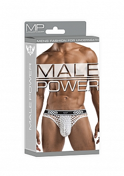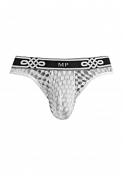 Low rise thong, low cut waist with lined pouch, new plush MP logo'd waistband. Feather light with soft stretch, open weaving offers a peek a boo effect and features a new MP logo'd plush elastic waistband.