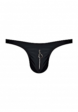 Stretch zipper thong features comfort fit pouch, functional peek-a-boo zipper accent in front with decorative oval slider, classic thong back and plush elastic waistband and trim.Stretchy nylon spandex blend is edgy, cool and comfortable