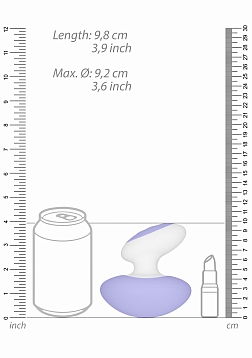 | Dimensions package | 16 x 13,50 x 7 cm | | Weight package | 220 gram | | Product dimensions | 9,8 x 9,2 x 9,2 cm | | Product weight | 149 gram | | Product diameter | 9,2 cm | | Rotations per minute | 5800 RPM | | Speed modes | 10 | | Noise level | 55 dB | | Rechargeable | Yes | | Rechargeable time | 120 min | | Recharged battery lifetime | 90 min | | Waterproof | Yes | | Splashproof | Yes | | Phthalate free | Yes | | Materials | Silicone, abs |