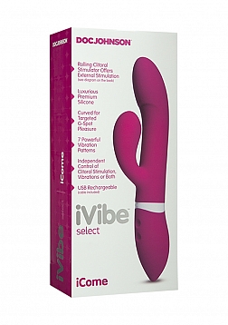 The iVibe Select iCome elevates the rabbit-style massager from toybox staple to multidimensional pleasure tool. The silicone iCome is an insertable massager with an anatomical curve for targeted G-spot stimulation and an exterior rolling clitoral vibe. The independently controlled shaft and clitoral motors of the iVibeĀ Select iCome can be used at the same time or separately, with seven exciting shaft vibration patterns and two clitoral stimulator settings.