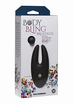 Add some bling to your bedroom with the Body Bling Breathless in SecondSkyn™, an amazingly soft, flexible silicone that warms to the touch and molds to your most sensitive areas. The flexible “bunny ears" shape is perfect for hugging the clitoris or experimenting with other uses, powered by a strong yet quiet motor with 8 unique functions.