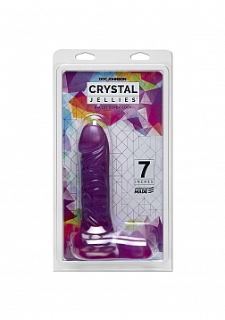 Doc Johnson's 7" Crystal Jellies Ballsy Super Cock is a beautiful dong with a prominent head and bulging veins down the shaft. The shaft is firm yet flexible and the flat base offers perfect stability. Available in Pink, Clear and Purple. Made from phthalate-free body-safe material. Proudly Made in America.