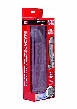 This extender sleeve gives you two whole inches of solid penis to plow into your partner! The realistic texture, featuring a bulbous head and bulging veins, along with a subtle curved shape will deliver a new kind of internal massage. Just lube up and put your entire package through the first hole, allowing your scrotum to go through the bottom hole for a satisfying stretch. The solid 2 inch tip is followed by a hollow interior that allows for a snug and secure fit. This body-safe and phthalate-free material is compatible with silicone and water-based lubricants. Use warm water and mild soap or a toy cleaner to clean after use.